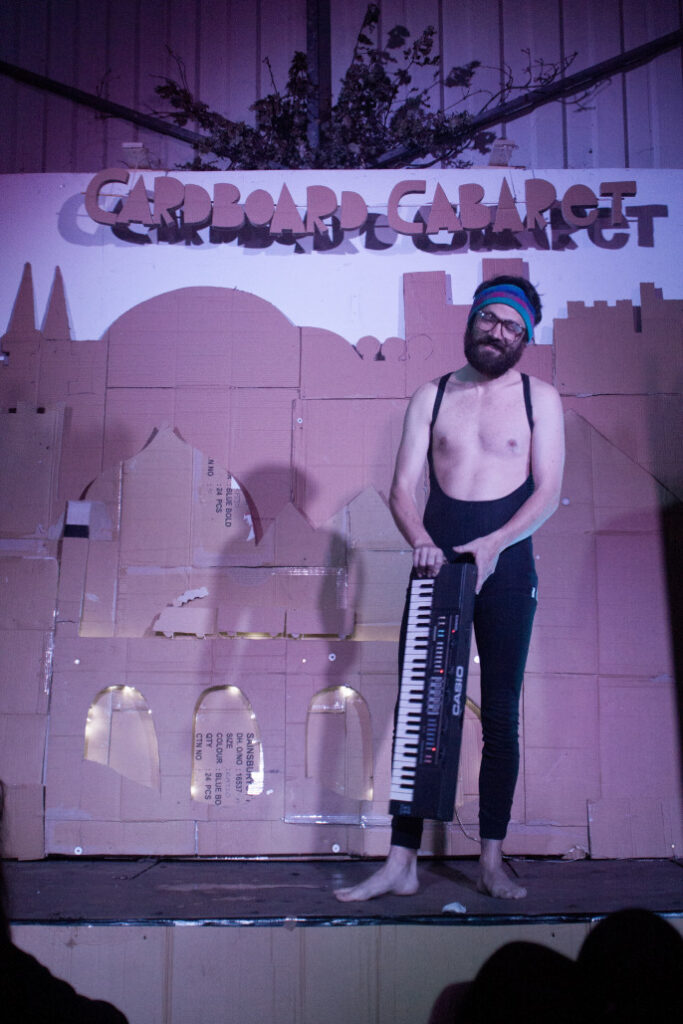 I produced and hosted three cardboard cabarets in London at The Russet and Cloud Coocooland Festival. Acts included: Flavia Bertram, Tommi Tomppa Bläkroff, Diego Borella, Stuart Bowden, Lauren Brindle, Dr. Brown, Elena Eva Casotto, Cheekykita, Dan Hernandez, Inda Pereda, Carlo Jacucci, Jody Kamali, Dan Lees, Twisted Loaf, Aristotelis Magoulas, Sharnema Nougar, The People Pile, Zuma Puma, Lucy Ridley, James Riordan, Tom Sankey, Lotan Sapir, Madame Senorita, Nina Ludovica Smith, Peter Spindler, Richard Verrill, Trygve Wakenshaw.